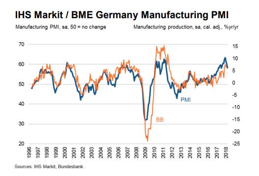 «Αν και ο μεταποιητικός κλάδος παραμένει σε υψηλά επίπεδα μα βάση τα ιστορικά πρότυπα, η τρίση συνεχόμενη πτώση του δείκτη PMI σηματοδοτεί την επιβράδυνση της δυναμικής στις επιχειρήσεις της χώρας», σχολίασε ο οικονομολόγος της Markit, Phil Smith, προσθέτοντας ότι «η ανάπτυξη της παραγωγής και των νέων παραγγελιών έχει μετριαστεί μέχρι στιγμής το 2018, και οι ρυθμοί επέκτασης του Μαρτίου ήταν μειωμένοι κατά το ήμιση σε σύγκριση με τα τέλη του 2017».