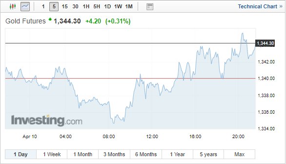 Με κέρδη έκλεισε και σήμερα (10/4/2018), για τρίτη συνεχόμενη ημέρα, ο χρυσός, ανακάμπτοντας από τις απώλειες που κατέγραφε νωρίτερα, καθώς οι γεωπολιτικές εντάσεις έστρεψαν τους επενδυτές στην ασφάλεια του πολύτιμου μετάλλου, παρά την ισχυρή άνοδο που σημειώνουν οι αμερικανικές μετοχές.