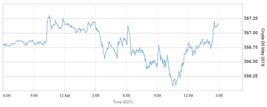 Έτσι, η τιμή του πετρελαίου WTI παραδόσεως Μαΐου ενισχύθηκε κατά 25 σεντς ή 0,4%, στα 67,07 δολ. ανά βαρέλι, παραμένοντας στα υψηλότερα επίπεδα από τις 3 Δεκεμβρίου 2014.