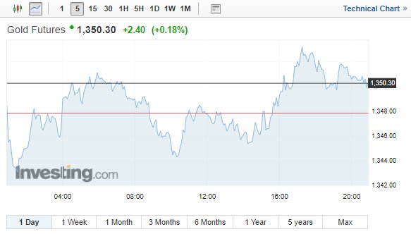 Η τιμή του συμβολαίου του χρυσού παραδόσεως Ιουνίου έκλεισε με κέρδη 0,2% ή 2,80 δολ., στα 1.350,70 δολ. ανά ουγγιά.