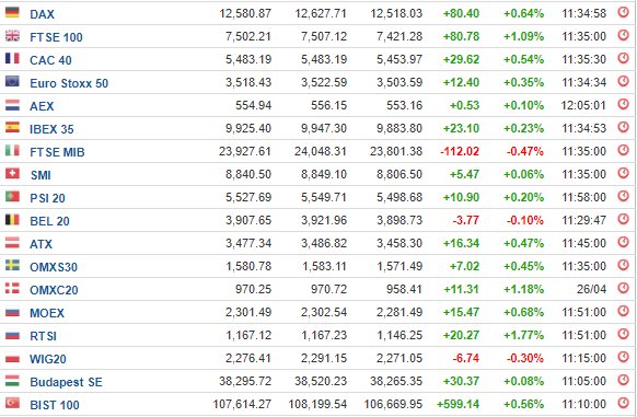 Ο DAX στη Φρανκφούρτη ενισχύθηκε κατά 0,64% στις 12.580,87 μονάδες, ο FTSE 100 στο Λονδίνο κατέγραψε άνοδο 1,09% στις 7.502,21 μονάδες, ενώ ο CAC 40 στο Παρίσι έκλεισε κατά 0,54% υψηλότερα στις 5.483,19 μονάδες.