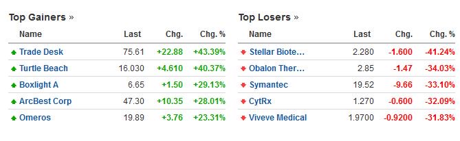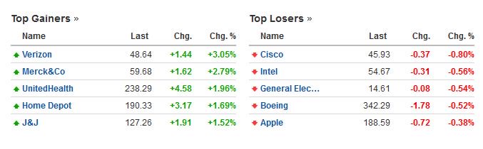 Οι μετοχές με την μεγαλύτερη άνοδο και την μεγαλύτερη πτώση στο δείκτη Dow Jones