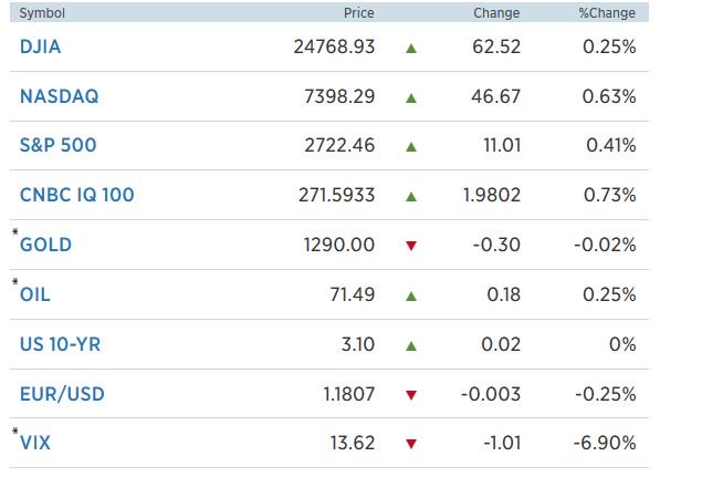 Στο 0,41% η άνοδος για τον S&P 500 στις 2.722 μονάδες, ενώ 0,63% υψηλότερα κινήθηκε ο Nasdaq φθάνοντας στο επίπεδο των 7.398 μονάδων.