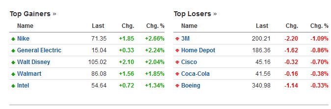 Οι μετοχές με την μεγαλύτερη άνοδο και την μεγαλύτερη πτώση στο δείκτη Dow Jones
