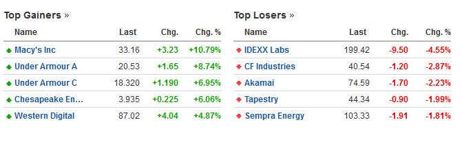 Οι μετοχές με την μεγαλύτερη άνοδο και την μεγαλύτερη πτώση στο δείκτη S&P 500
