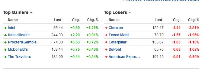Οι μετοχές με την μεγαλύτερη άνοδο και την μεγαλύτερη πτώση στο δείκτη Dow Jones
