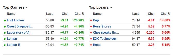 Οι μετοχές με την μεγαλύτερη άνοδο και την μεγαλύτερη πτώση στο δείκτη S&P 500
