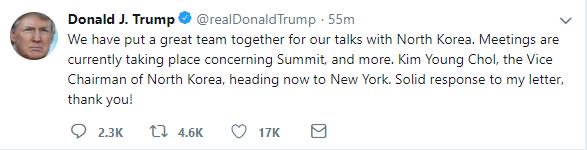 «Έχουμε τοποθετήσει μία σπουδαία ομάδα για τις συνομιλίες μας με τη Βόρεια Κορέα.