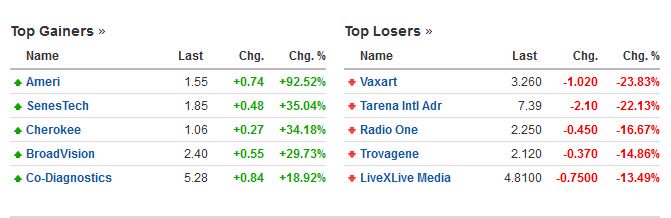 Οι μετοχές με την μεγαλύτερη άνοδο και την μεγαλύτερη πτώση δείκτη Nasdaq