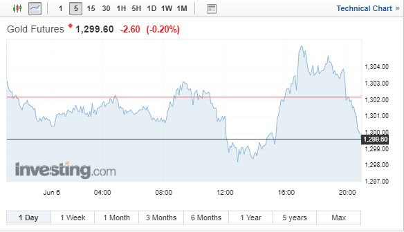 Με οριακές απώλειες έκλεισε σήμερα (5/6/2018) ο χρυσός, παρά το γεγονός ότι το δολάριο καταγράφει πτώση έναντι των υπόλοιπων σημαντικών νομισμάτων, καθώς οι επενδυτές παραμένουν ανήσυχοι εν μέσω των εμπορικών εντάσεων μεταξύ των ΗΠΑ και των βασικών τους εταίρων, αλλά και εν αναμονή μιας αύξησης των επιτοκίων από την Ομοσπονδιακή Τράπεζα των ΗΠΑ (Federal Reserve, Fed), την επόμενη εβδομάδα.