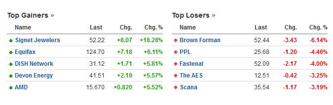 Οι μετοχές με την μεγαλύτερη άνοδο και την μεγαλύτερη πτώση στο δείκτη S&P 500