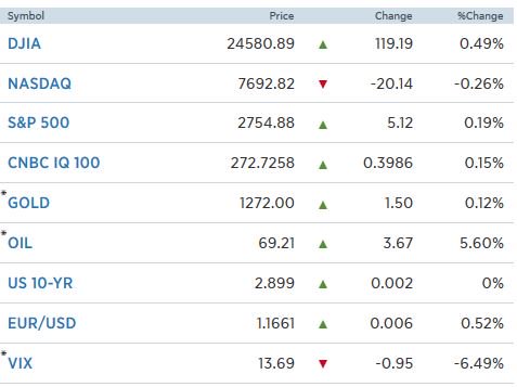 Αποτέλεσμα των παραπάνω ο Dow Jones να ενισχυθεί άνω των 100 μονάδων ή 0,49% στις 24.580 μονάδες.