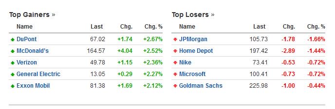 Οι μετοχές με την μεγαλύτερη άνοδο και την μεγαλύτερη πτώση στο δείκτη Dow Jones