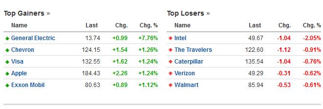 Οι μετοχές με την μεγαλύτερη άνοδo και την μεγαλύτερη πτώση στο δείκτη Dow Jones