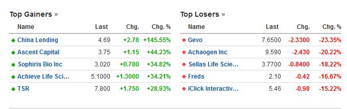 Οι μετοχές με την μεγαλύτερη άνοδo και την μεγαλύτερη πτώση στο δείκτη Nasdaq