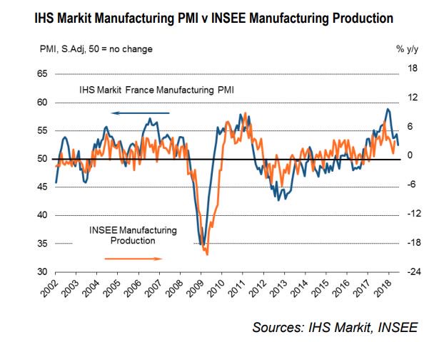 «Τα στοιχεία του Ιουνίου αποκάλυψαν ότι η ανάπτυξη τους μεταποιητικού κλάδου συνεχίζει να χάνει τη δυναμική της στη Γαλλία, με τις γενικότερες συνθήκες τον επιχειρήσεων να βελτιώνονται με τον βραδύτερο ρυθμό των τελευταίων 16 μηνών», σχολίασε ο αναπληρωτής διευθυντής της Markit, Tim Moore, προσθέτοντας παράλληλα ότι «οι εξαγωγές αυξήθηκαν οριακά τον Ιούνιο, συμβάλλοντας στην ασθενέσθερη άνοδο των νέων εργασιών από το φθινόπωρο του 2016».
