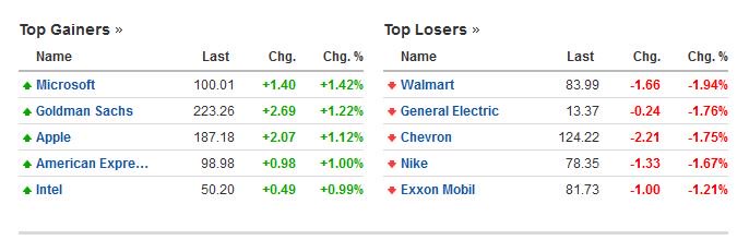 Οι μετοχές με την μεγαλύτερη άνοδο και την μεγαλύτερη πτώση στο δείκτη Dow Jones