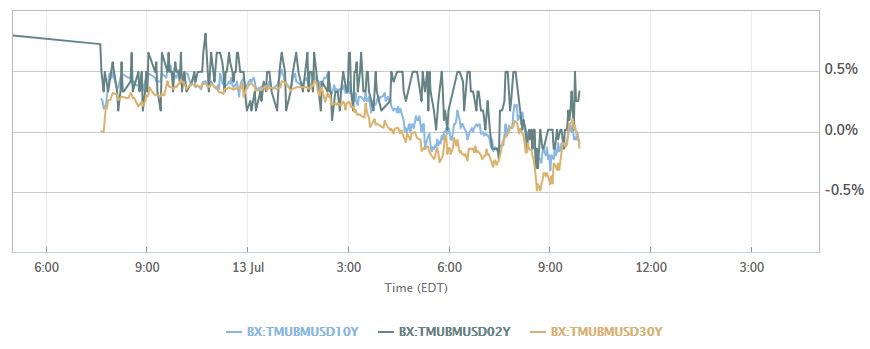 Πτωτικά κινούνται σήμερα (13/7/2018) οι αποδόσεις των κρατικών ομολόγων των ΗΠΑ, καθώς οι επίμονες εμπορικές ανησυχίες στρέφουν τους επενδυτές στα ασφαλέστερα καταφύγια, ενώ περαιτέρω στήριξη προσφέρουν και οι προσδοκίες για συνέχιση των σταδιακών αυξήσεων των επιτοκίων από την Ομοσπονδιακή Τράπεζα των ΗΠΑ (Federal Reserve, Fed).