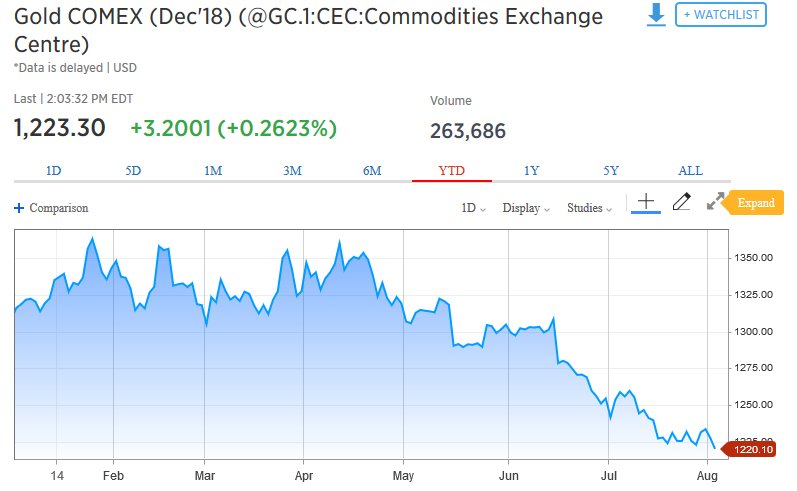 Με θετικό πρόσημο ολοκλήρωσε την τελευταία (3/8) συνεδρίαση της εβδομάδας ο χρυσός, μετά τα στοιχεία για την ανεργία τις ΗΠΑ τον Ιούλιο, αλλά δεν κατόρθωσε να κλείσει θετικά και σε εβδομαδιαία βάση.