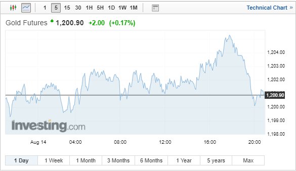 Με ήπια κέρδη έκλεισε σήμερα (14/8/2018), μετά από τρεις ημέρες απωλειών, ο χρυσός, επανακτώντας το ψυχολογικό όριο των 1.200 δολ. ανά ουγγιά, αν και παρέμεινε κοντά στα χαμηλότερα επίπεδα των τελευταίων 18 μηνών.