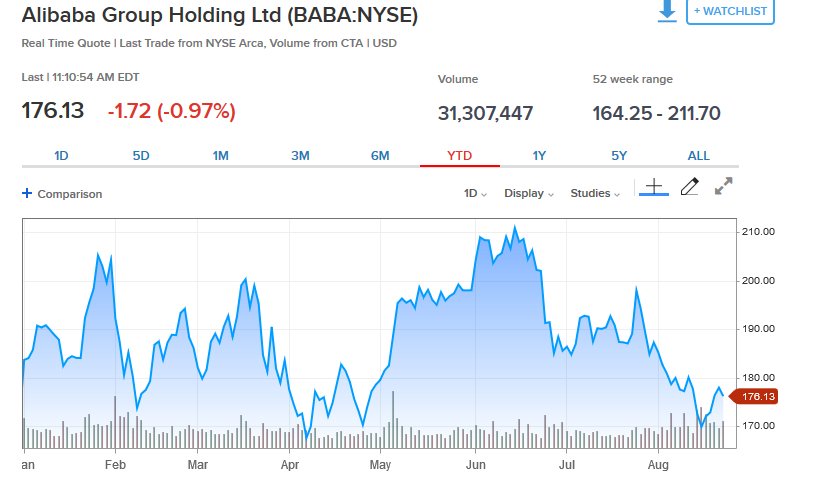 Καλύτερα των εκτιμήσεων των αναλυτών ήταν τα έσοδα α' τριμήνου για το έτος χρήσης 2018 - 2019, του κινεζικού ομίλου Alibaba, τα οποία, όμως, δεν φαίνεται να ικανοποιήσαν τους επενδυτές, με αποτέλεσμα η μετοχή να υποχωρεί κοντά στο 1%.