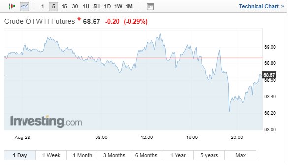 Έτσι, τα συμβόλαια μελλοντικής εκπλήρωσης Σεπτεμβρίου για το αμερικανικό αργό (WTI) έκλεισαν με πτώση 34 σεντς ή 0,5%, στα 68,53 δολ. ανά βαρέλι.