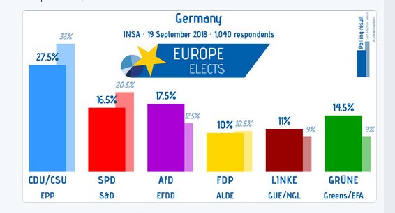 Πάντως και η πορεία των CDU/CSU είναι πτωτική, καθώς στην προηγούμενη δημοσκόπηση της Insa είχαν ποσοστό 33%.