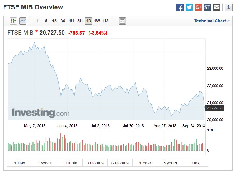 Σε ελεύθερη πτώση ιταλικά ομόλογα και μετοχές