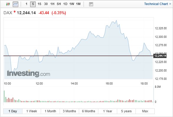 Ο DAX στη Φρανκφούρτη υποχώρησε κατά 0,35% στις 12.244,14 μονάδες, ο FTSE 100 στο Λονδίνο σημείωσε σημαντική πτώση 1,22% στις 7.418,34 μονάδες, ενώ ο CAC 40 στο Παρίσι έκλεισε με βουτιά 1,47%, στις 5.410,85 μονάδες.