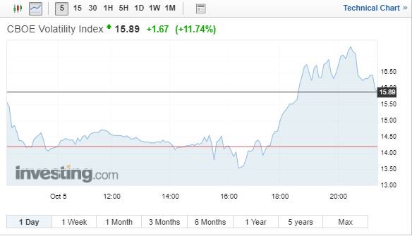 Σημαντική άνοδο άνω του 11%, στις 15,9 μονάδες, καταγράφει και ο δείκτης μεταβλητότητας CBOE Volatility Index ή δείκτης φόβου.