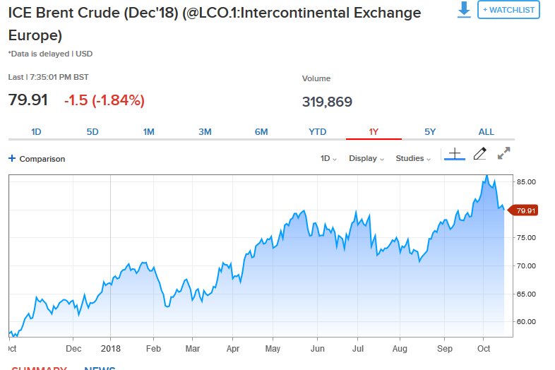Ειδικότερα, τα αποθέματα πετρελαίου των ΗΠΑ αυξήθηκαν κατά 6,5 εκατ. βαρέλια την εβδομάδα έως τις 12 Οκτωβρίου 2018, έναντι των προβλέψεων των αναλυτών για μια ηπιότερη αύξηση κατά 2,2 εκατ. βαρέλια.