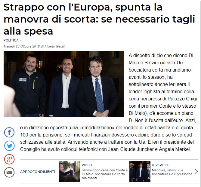 Σε αντίθεση με όσα υποστηρίζει η ιταλική κυβέρνηση σχετικά με τον προϋπολογισμό του 2019 και τη διαμάχη με τις Βρυξέλλες, υπάρχει Plan B.
