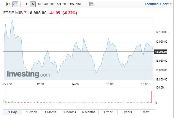 Εν τω μεταξύ, με ήπιες απώλειες έκλεισε το χρηματιστήριο του Μιλάνου, με τον δείκτη FTSE MIB να κλείνει στο -0,22% και τις 18.998,80 μονάδες.