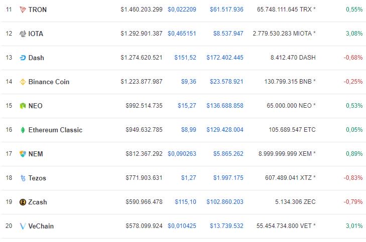 Η συνολική αξία του κλάδου παραμένει σχεδόν αμετάβλητη σε ημερήσια βάση, στα 203,5 δισεκ. δολάρια, με τον όγκο συναλλαγών τις τελευταίες 24 ώρες να φθάνει τα 11,7 δισεκ. δολάρια.