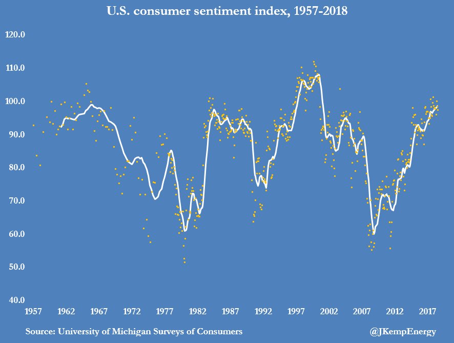 Ειδικότερα, όπως προκύπτει από την τελική μέτρηση που ανακοινώθηκε σήμερα (21/11/2018), ο δείκτης καταναλωτικής εμπιστοσύνης του πανεπιστημίου του Μίτσιγκαν διαμορφώθηκε στις 97,5 μονάδες τον Νοέμβριο, έναντι των προβλέψεων των οικονομολόγων για μια πτώση στις 98,3 μονάδες.