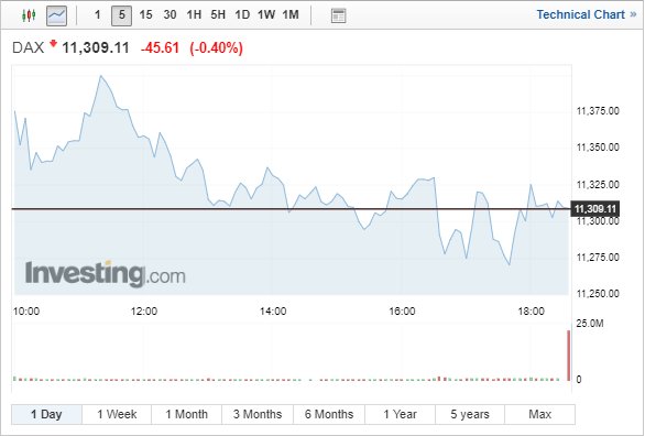 Στη Φρανκφούρτη, ο δείκτης DAX υποχώρησε κατά 0,40% κι έκλεισε στις 11.309,11 μονάδες, ο FTSE 100 στο Λονδίνο σημείωσε πτώση 0,27% στις 7.016,85 μονάδες, ενώ ο CAC 40 στο Παρίσι έκλεισε με απώλειες 0,24%, στις 4.983,15 μονάδες.