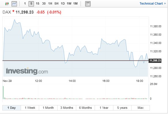 Με οριακές μεταβολές έκλεισαν σήμερα (29/11/2018) τα κυριότερα χρηματιστήρια της Ευρώπης, στον απόηχο του ράλι που κατέγραψαν χθες οι δείκτες της Wall Street, μετά την ομιλία Powell.