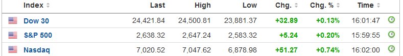 Ανάλογη πορεία ακολούθησε και ο S&P 500, ο οποίος ολοκλήρωσε τη συνεδρίαση με άνοδο 0,2% στις 2.638 μονάδες, ενώ 0,74% υψηλότερα κινήθηκε ο Nasdaq στο επίπεδο των 7.020 μονάδων.
