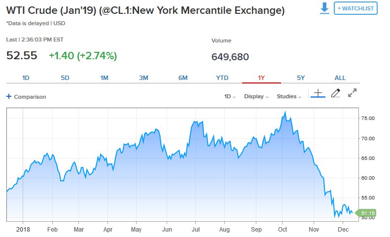Σύμφωνα με τα στοιχεία της αμερικανικής Διεύθυνσης Πληροφοριών Ενέργειας, τα αποθέματα αργού για την εβδομάδα που ολοκληρώθηκε στις 7 Δεκεμβρίου 2018 υποχώρησαν κατά 1,2 εκατ. βαρέλια, με την πτώση ωστόσο να είναι μικρότερη σε σύγκριση με τις εκτιμήσεις των αναλυτών στα 3 εκατ. βαρέλια.