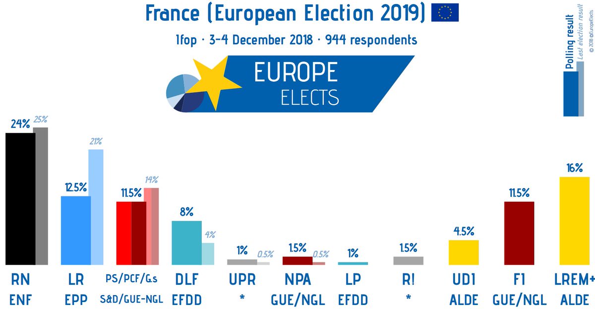 Πλέον το Εθνικό Μέτωπο είναι πρώτο κόμμα με 24% και ακολουθεί με 18% το κόμμα του Macron.