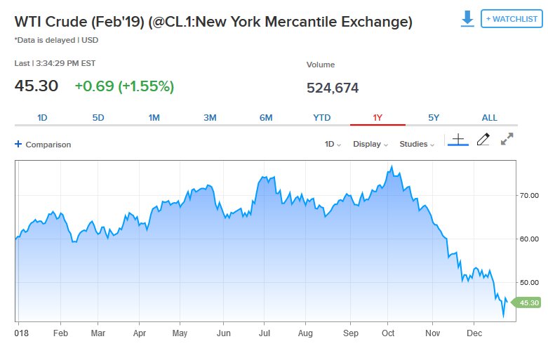 Σημειώνεται ότι σύμφωνα με τα προκατακρτικά στοιχεία του Αμερικανικού Ινστιτούτου Πετρελαίου, τα αποθέματα αργού στις ΗΠΑ για την εβδομάδα που ολοκληρώθηκε στις 21 Δεκεμβρίου 2018 αυξήθηκαν κατά 6,9 εκατ. βαρέλια, στα 448,2 εκατ. βαρέλια ημερησίως.