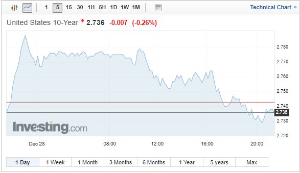 Στην ασφάλεια των αμερικανικών ομολόγων στρέφονται και σήμερα (28/12/2018) οι επενδυτές, εν μέσω της έντονης μεταβλητότητας που καταγράφεται στη Wall Street.