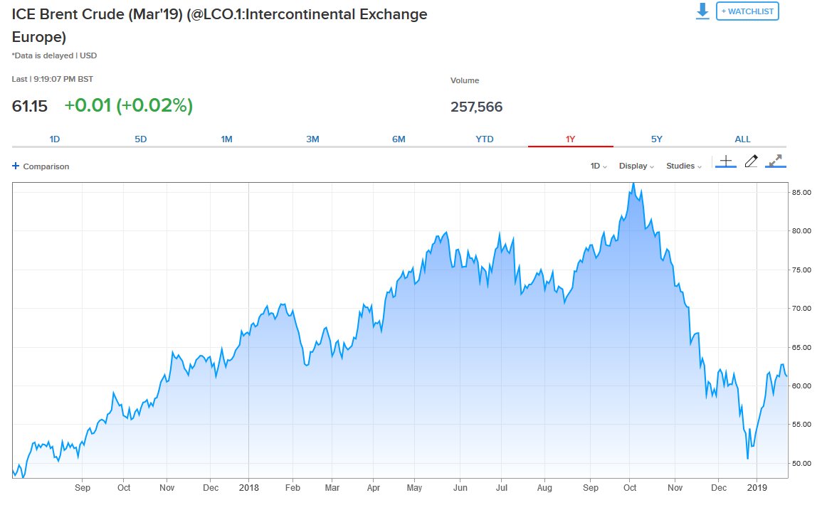 Ειδικότερα, το προθεσμιακό συμβόλαιο Μαρτίου 2019 για το Brent είχε κέρδη της τάξης του 0,02% στα 61,15 δολ. ανά βαρέλι, την ίδια στιγμή που το προθεσμιακό συμβόλαιο Φεβρουαρίου 2018 για το αμερικανικό αργό ενισχύθηκε 1,18% στα 53,24 δολ. ανά βαρέλι.