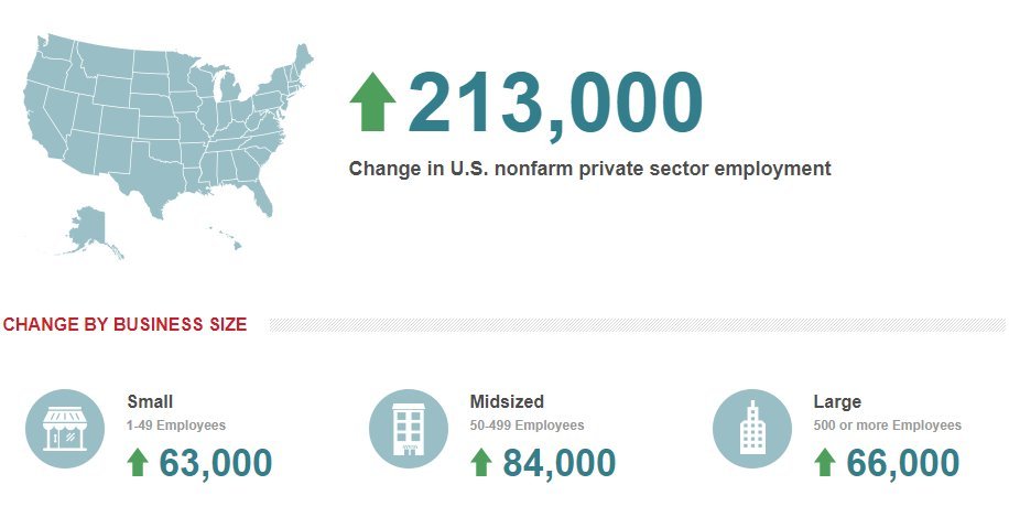 Ειδικότερα, όπως προκύπτει από σημερινά (30/1/2019) στοιχεία των ADP/Moody's Analytics, ο ιδιωτικός τομέας των ΗΠΑ πρόσθεσε 213.000 νέες θέσεις εργασίας τον Ιανουάριο του 2019.
