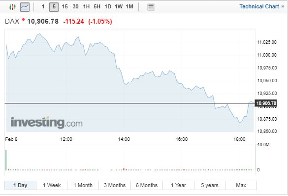 Ο δείκτης DAX στη Φρανκφούρτη διολίσθησε κατά 1,05% στις 10.906,78 μονάδες.