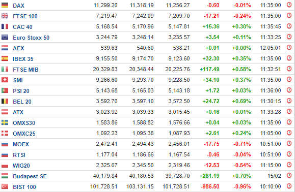 Με οριακές μεταβολές και μεικτά πρόσημα έκλεισαν σήμερα (18/2/2019) οι δείκτες στα κυριότερα χρηματιστήρια της Ευρώπης, καθώς οι επενδυτές εξακολουθούν να παρακολουθούν τις εμπορικές συνομιλίες ανάμεσα σε ΗΠΑ και Κίνα, ενώ το κλίμα ήταν σε γενικές γραμμές υποτονικό, με τη Wall Street να παραμένει κλειστή για την αργία της Ημέρας του Προέδρου.