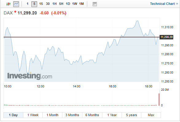 Στη Φρανκφούρτη, ο δείκτης DAX υποχώρησε οριακά κατά 0,01% κι έκλεισε στις 11.299,20 μονάδες, ο FTSE 100 στο Λονδίνο σημείωσε πτώση 0,24% στις 7.219,47 μονάδες, ενώ ο CAC 40 στο Παρίσι ενισχύθηκε κατά 0,30% στις 5.168,54 μονάδες.