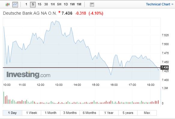 Βαριές απώλειες 4,1% και 3,4% αντίστοιχα κατέγραψαν οι μετοχές των Deutsche Bank και Commerzbank, εν μέσω φόβων ότι μια συγχώνευσή τους θα πιέσει την Deutsche Bank σε περαιτέρω συρρίκνωση των αμερικανικών της επιχειρήσεων.