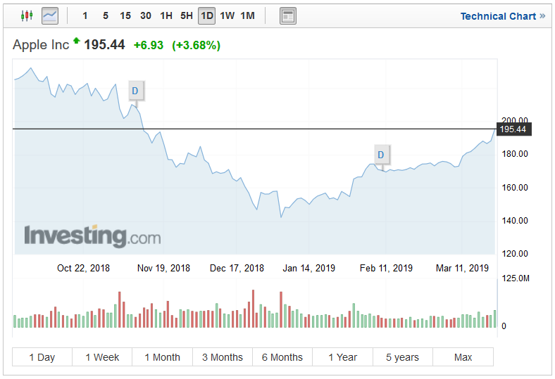 Η μετοχή της Apple είχε «άλμα» της τάξης του 3,68%, μετά την αναβάθμισή της από τη Needham σε «strong buy», από «buy» που ήταν επί δύο χρόνια, καθώς και την αύξηση της τιμής - στόχου 225 δολ. από 180 δολ. προηγουμένως.