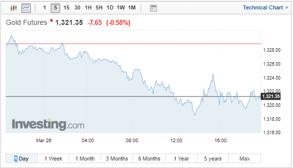 Με απώλειες έκλεισε σήμερα (26/3/2019) ο χρυσός, έχοντας απομακρυνθεί από τα υψηλά ενός μήνα που «άγγιξε» χθες, καθώς μετριάστηκαν οι ανησυχίες για την ανάπτυξη της παγκόσμιας οικονομίας, στρέφοντας τους επενδυτές σε πιο ριψοκίνδυνα assets.